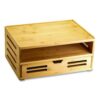 Bamboo Stackable Document Organizer with Drawer, 2 Sections, Letter Size Files, 14.09″ x 10.08″ x 7.7″, Brown