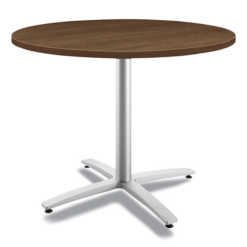 The round work surface brings everyone closer to their work. Scratch-, spill- and stain-resistant laminate stands up to heavy use. Easily attach a base using pre-drilled holes. Thick work surface provides a sturdy foundation for work. Durable edge-band provides a smooth, comfortable edge.