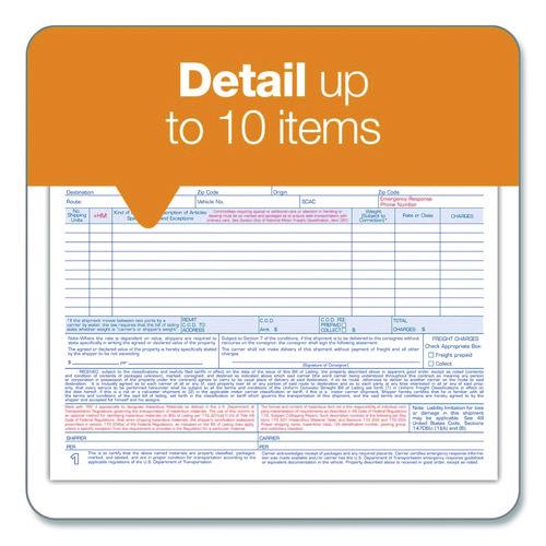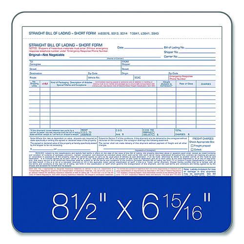 Bill of Lading – Short Form for Up to Ten Articles, Three-Part Carbonless, 8.5 x 6.94, 50 Forms Total