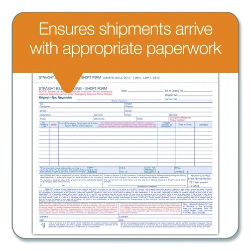 Choose Adams® Bill of Lading – Short Forms and ensure all your shipments arrive with the appropriate paperwork. Adaptable to most types of shipments to any location in the United States, these simplified, short forms provide space to itemize several articles. Dedicated columns are provided for shipping units, hazardous materials indicators, article descriptions, shipping weights, rate/class codes and charges. Multi-part format lets you distribute copies and keep a master for yourself. Carbonless paper produces clean, smudge-free results.