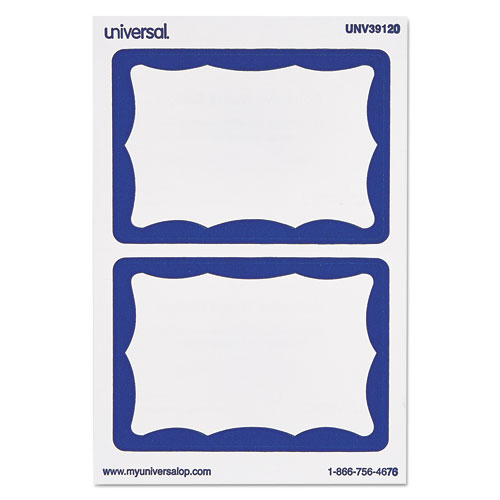 Border-Style Self-Adhesive Name Badges, 3 1/2 X 2 1/4, White/blue, 100/pack