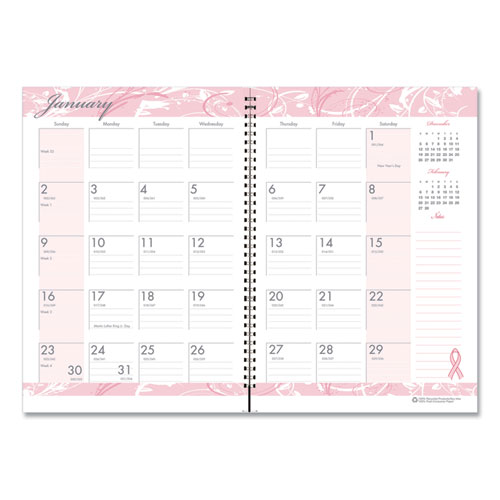Breast Cancer Awareness Recycled Ruled Monthly Planner/Journal, 10 x 7, Pink Cover, 12-Month (Jan to Dec): 2025