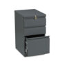 Heavy-duty pedestals with radius pulls to complement Brigade 800 Series Lateral Files. High sides for front-to-back letter size filing. Ball bearing suspensions on file drawer (90% extension) and box drawer (75%) extension. HON® “One Key” interchangeable lock core. Counterweight inhibits tipping when opening more than one drawer. Fixed front casters; swivel back casters. Fits under 29 1/2″ high worksurfaces.