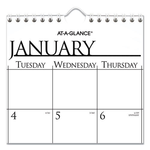 Use this planning calendar to keep track of your schedule. Perfect when you need to keep the work team or whole family on the same page. High-quality paper features superior ink bleed resistance. Covers 12 months from January to December with Julian dates. One month per page format with unruled daily blocks for plenty of open planning space. Past/future month calendar references are displayed for easy date tracking and future planning. Use alone or with any Day Runner wall planning board. Full chipboard backing creates a firm writing surface. Twin wire binding at the top has a built-in hanging loop for easy wall display.