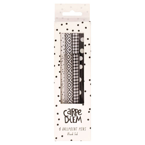 Carpe Diem Ballpoint Pen, Stick, Medium 0.7 mm, Black Ink, Assorted Geometric Barrel Patterns, 4 Pens/Pack, 6 Packs/Box