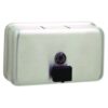 Attractive, satin-finished stainless steel dispenser enhances nearly any washroom. Corrosion-resistant valve. Clear acrylic refill-indicator window indicates when refill is required. Hinged filler-top requires special key to open. Unit features a concealed, vandal-resistant mounting.