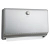 Satin-finish stainless steel towel dispenser. Dispenser is convenient to surface or wall-mountable. Holds c-fold or multifold towels. Key-latch door for easy towel refills. Hemmed towel tray opening allows patrons easy access to towels.