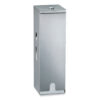 Satin-finish, stainless steel dispenser holds three standard-core toilet tissue rolls up to 4.5″ diameter. Extra rolls drop into place when bottom roll is finished. Type-304, 22-gauge stainless steel.