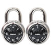 Combination Lock, Stainless Steel, 1.87″ Wide, Silver/Black, 2/Pack