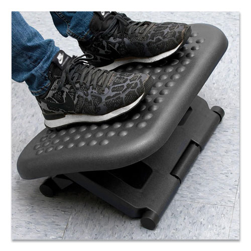 Get off your feet with this black adjustable footrest. Multiple tilt angles and three height settings allow you to find the most comfortable position, and the non-slip surface keeps your feet in place. This Mind Reader adjustable footrest has an ergonomic design that supports your legs for enhanced relaxation at home or at the office.