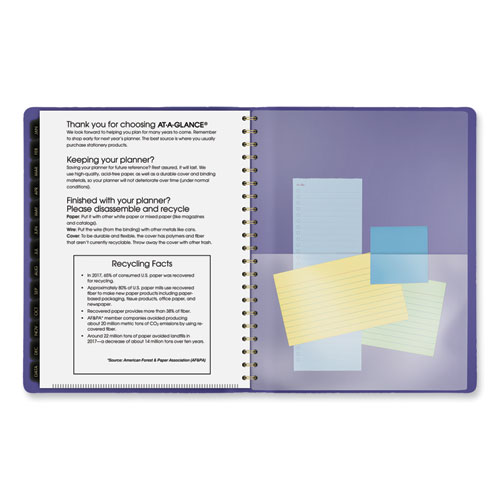 Unique planner features a professional, contemporary design that’s perfect for long-term planning and staying on track the whole year through. Two-page per week spreads feature reference calendars, plenty of space for your daily appointments and notes as well as a devoted section for each day’s top priorities. Tabbed one-month per two-page spreads feature unruled daily blocks, reference calendars as well as a ruled column for the month’s most important goals and tasks. In the back of the book, you’ll find space for additional notes, important contact information, future planning and more. All federal holidays are highlighted, and all sections are printed on premium paper to ensure excellent ink-bleed resistance.