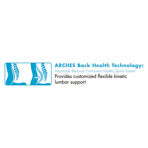 Adjustable Reactive Contoured Ergonomic Support, ARCHES, back health technology provides customized flexible kinetic lumbar support. SertaPedic® comfort support system with layers of molded foam, memory foam, and pocket coils. Upholstered in black commercial grade bonded leather. Pneumatic lift with tilt tension adjustment and lockout feature. Five-star nylon base with casters for easy mobility. Supports up to 275 lbs.