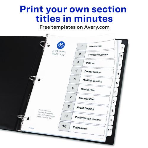 customizable table of contents ready index black and white dividers, 10-tab, 1 to 10, 11 x 8.5, white, 6 sets