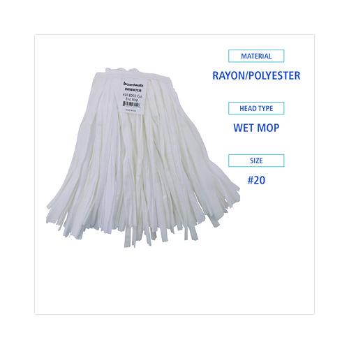 Cut-End Wet Mop Head, Rayon/polyester, Non-Woven, White, 20oz