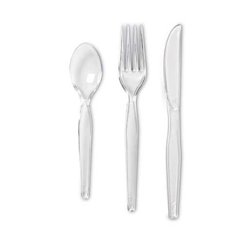 Cutlery Keeper Tray with Clear Plastic Utensils, Heavyweight, Fork/Knife/Spoon, Plastic, Crystal Clear, 1,800/Carton