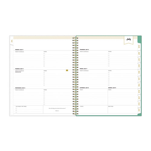 Day Designer for Blue Sky is a simple and easy system created to help find balance, focus and productivity. This planner can through a simple and guided framework, help you figure out a focus for intentional living. It can be a trusted tool for setting goals, creating a plan and taking action each and every day. The exceptionally built planner exudes quality, design elements and inspired productivity in one well-organized ensemble. It will teach and guide you to organize your day, your tasks, assignments, to-do’s and achieve your goals. It’s ideal for business professionals, parents, teachers, professors, administrators, students or anyone involved in education. It will also make a subtle fashion statement with friends and peers around you.