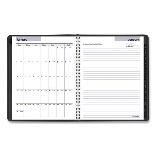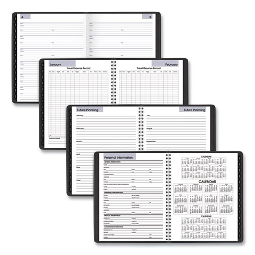 Planning with a professional touch. Keep track of the big picture on the monthly spreads while planning out the meticulous details on the weekly spreads. Weekly spreads feature plenty of planning and notes space for appointments, events and important tasks. Tabbed, monthly spreads feature a block calendar on the left and a full page for notes on the right. Robust appendix, designed specifically for busy executives, provides a variety of useful planning and reference resources to simplify your life. Padded, simulated leather cover looks like it belongs out in the open, in a top-floor, corner office, while the cover’s concealed twin-wire binding minimizes the potential for snags, no matter how boldly you stride forward. High-quality paper delivers superior ink-bleed resistance to keep everything looking sharp.
