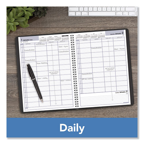 DayMinder Four-Person Group Daily Appointment Book, 11 x 8, Black Cover, 12-Month (Jan to Dec): 2025