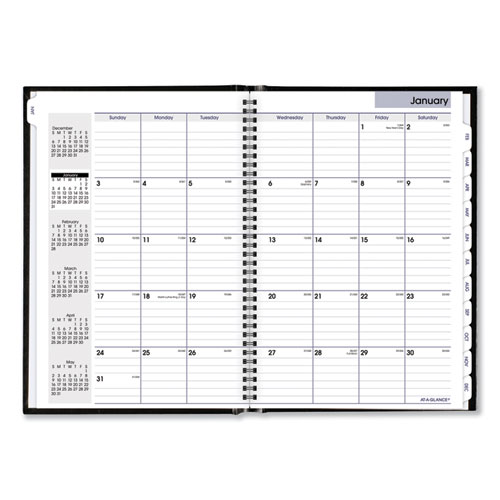 Hard cover is great for archiving. One month per two-page spread; past, current and four future months reference. Monthly tabs and storage pocket. Printed on high-quality paper with superior ink bleed resistance. Expand your organizational skills with special pages. Includes travel and expense tracking, personal information, contacts pages, 48 lined notes pages and a double-sided pocket.