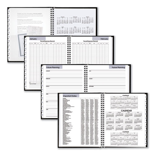 Hard cover is great for archiving. One month per two-page spread; past, current and four future months reference. Monthly tabs and storage pocket. Printed on high-quality paper with superior ink bleed resistance. Expand your organizational skills with special pages. Includes travel and expense tracking, personal information, contacts pages, 48 lined notes pages and a double-sided pocket.