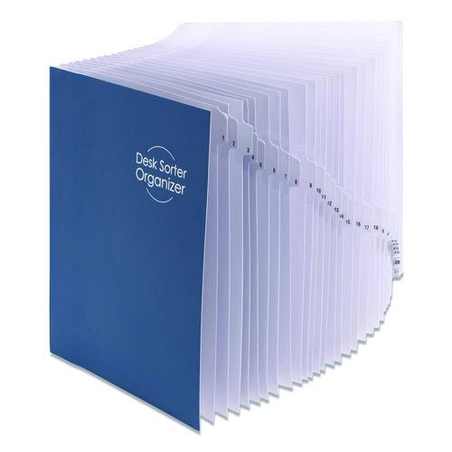 Deluxe Expandable Indexed Desk File/Sorter, 31 Dividers, Date Index, Letter Size, Dark Blue Cover