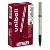 Introduce sophisticated style to your everyday writing with Deluxe Rollerball Stick Pens from uni-ball featuring a strong, long lasting tip. Even-flowing, acid-free liquid ink delivers a smooth writing experience for intense, vibrant lines. Deluxe delivers crisp lines with unparalleled definition, making it easy to create super fine details in your drawings and diagrams. Capped roller pens are useful for a variety of tasks from note taking and list making to signing checks and legal documents. Innovative uni Super Ink technology forms a strong bond with the paper, protecting from water, fading and fraud. Up your writing instrument sophistication with the matte black, brushed steel barrel of the Deluxe capped rollerball pens.