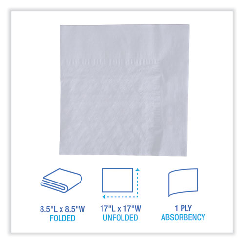 Dinner Napkin, 1-Ply, 17 x 17, White, 250/Pack, 12 Packs/Carton