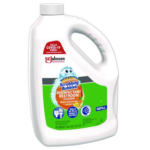 Scrubbing Bubbles® Disinfectant Restroom Cleaner thoroughly cleans, shines, disinfects and deodorizes. One product for cleaning a variety of hard non-porous surfaces including toilets, vanities, sinks, faucets, showers, tubs, floors, walls, handrails, door handles and diaper changing tables. Kills fungus. Use on stainless steel, chrome, aluminum, bronze, brushed nickel, sealed granite, sealed marble, quartz, acrylic, fiberglass and tile.