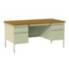 Double Pedestal Steel Desk, 60″ x 30″ x 29.5″, Cherry/Putty, Putty Legs