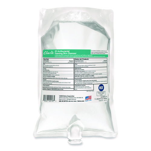 E2 Antibacterial Foaming Skin Cleanser Refill, Fragrance-Free, 1,000 mL, 6/Carton