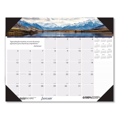 Earthscapes Recycled Monthly Desk Pad Calendar, Mountains of the World Photos, 22 x 17, Black Corners,12-Month(Jan-Dec): 2025