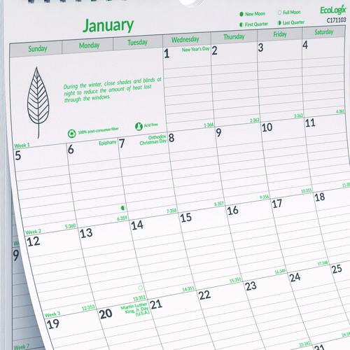 EcoLogix Monthly Wall Calendar, EcoLogix Artwork, 12 x 17, White/Green Sheets, 12-Month (Jan to Dec): 2025