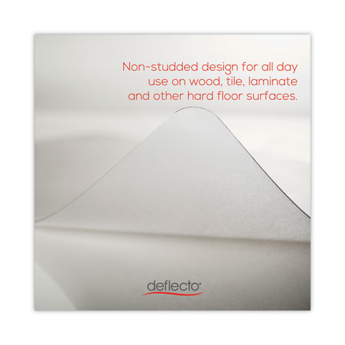 Thinner, lightweight, non-studded EconoMat for hard floors is an excellent value for anyone looking for an all-day use office chair mat to protect wood, tile, laminate and other hard floor surfaces. Easy-glide rolling surface provides smooth office chair movement to help minimize stress and strain on users back, legs and feet, and protects floors from caster wear, spills and heavy traffic. Free and Clear non-orthophthalate, non-cadmium formula promotes a healthy work environment and delivers exceptional clarity without harsh chemicals.