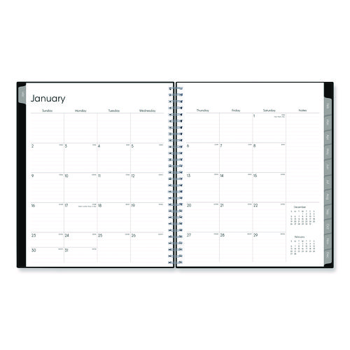 The professional exterior you’re looking for, with the interior content you rely on to manage and organize your months. This unique planner offers two-page spreads for each month with ruled daily blocks and a ruled notes column. Durable coated tabs offer easy page turning and access to past, present and future months. Twin-wire binding keeps everything together while eliminating the potential for snags on bags and clothing. Special sections in the back of the book provide plenty of extras for your yearly goals, important contacts, general notes and more. Thick, premium pages throughout minimize the potential for ink-bleed.