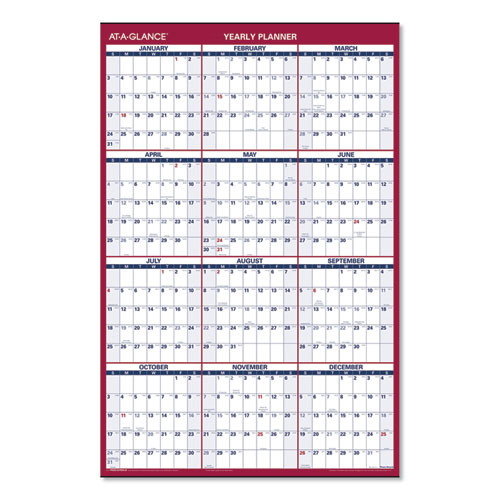 Erasable Vertical/Horizontal Wall Planner, 24 x 36, White/Blue/Red Sheets, 12-Month (Jan to Dec): 2025