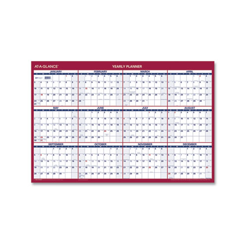 Get the planning versatility that busy professionals need with this reversible wall-calendar. Hang the calendar the way that best meets your needs or track important business events on one side and personal events on the other. Both sides of the calendar display a full 12-months, with one side laid out vertically in four rows of three months and the other side laid out horizontally in three rows of four months. Bold, larger than average print on a contrasting background makes both sides easy to read. And AT-A-GLANCE® is well aware that plans change, so this calendar’s made to keep up with the most hectic scheduling issues. Simply note your important information with the included wet-erase marker and wipe the calendar clean with a damp cloth to fully take advantage of its write-on/wipe-off design.