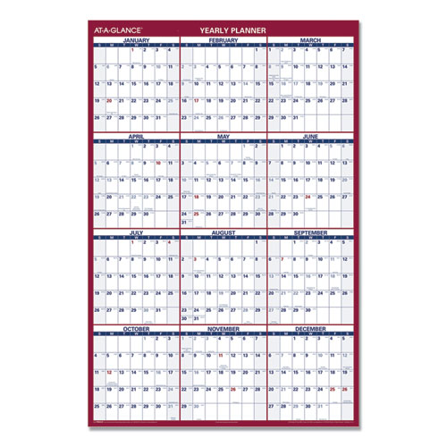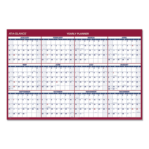 Get the planning versatility that busy professionals need with this reversible wall-calendar. Hang the calendar the way that best meets your needs or track important business events on one side and personal events on the other. Both sides of the calendar display a full 12-months, with one side laid out vertically in four rows of three months and the other side laid out horizontally in three rows of four months. Bold, larger than average print on a contrasting background makes both sides easy to read. And AT-A-GLANCE® is well aware that plans change, so this calendar’s made to keep up with the most hectic scheduling issues. Simply note your important information with the included wet-erase marker and wipe the calendar clean with a damp cloth to fully take advantage of its write-on/wipe-off design.