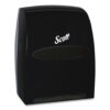 The Scott® Essential* Towel Dispenser System is designed to provide long-lasting service, reducing disruptions and user complaints. Touchless dispensing reduces the spread of germs and creates a more hygienic environment. Battery-free dispenser provides long-lasting service with less necessary maintenance. Easy to reload in a few simple steps. Transparent dispenser allows you to check supply levels without opening dispenser. Stub roll feature minimizes waste. Convenient keyless entry option.