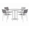 White 36" Round Phenolic Table Top; 29" Tall White Round Table Base; (4) Gray Powder-Coated Polymer 18" Seat Height Chairs