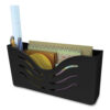 Deflecto’s magnetic organizer provides an efficient way to keep mail and office supplies neatly organized. Featuring a patented design that allows easy access to documents, note pads, writing instruments and other smaller office supplies, the magnetic organizer can be mounted on a side or back wall or in a cubicle or conference room partition. Spacious with a removable divider, it conveniently fits all sizes of file folders and large-format documents. A convenient place to stash bills awaiting payment while keeping them at hand. Includes magnets, mounting screws and push pins.