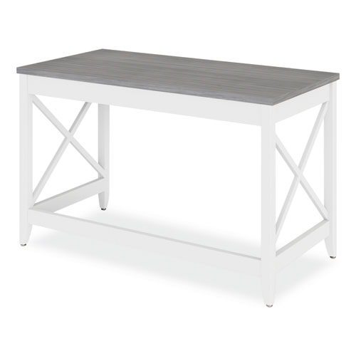 Stylish farmhouse desk with X accents on side panels fits into the décor of most spaces. The multi-function desk is constructed with a smooth, laminate wood top with white wood legs. The simple design without drawers can be used as a desk or console table. The wide top surface provides ample space to work or to display decorative items. Thoughtfully finished on all sides for position flexibility within a room. Some assembly is required.