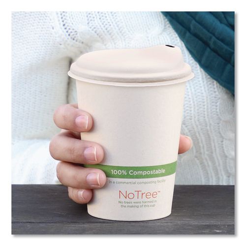 Fiber hot cup lids are made from bamboo and unbleached plant fiber, an annually renewable resource. Contains no added PFAS. Soak proof and have no wax or plastic lining. Durable, freezer safe and certified compostable in 2 to 4 months in a commercial composting facility.