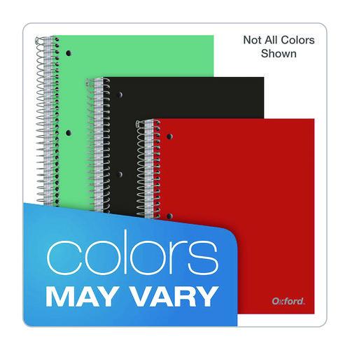 This Oxford five-subject poly notebook comes in bright colors and is three-hole punched to fit a standard binder. Includes five poly divider pockets and a strong no-snag coil. Comes in assorted colors.