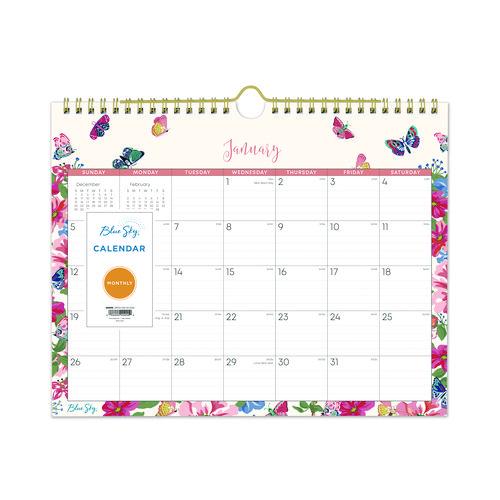 Spruce up your home or office with whimsical artwork while you keep your days on track. Butterflies flit across each page of this colorful calendar to bring cheer to every day of your year. Ruled daily blocks help you keep your notations neat, while the thick, premium pages prevent your ink from bleeding through. Monthly format features daily blocks running Sunday through Saturday, a count of days past and days remaining, labeled holidays as well as past and future month reference blocks. Attractive, brightly polished twin-wire binding features a sturdy wall-mount loop for secure hanging. Printed with soy-based inks on acid-free paper.