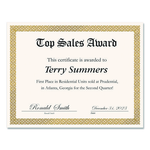 Foil Border Certificates, 8.5 X 11, Ivory/gold With Gold Braided Border, 15/pack