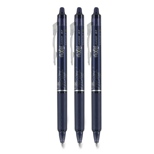 FriXion Clicker Erasable Gel Pen, Retractable, Fine 0.7 mm, Navy Ink, Navy Barrel, 3/Pack