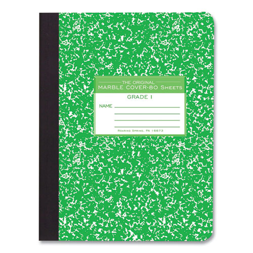 Grade School Ruled Composition Book, Grade 1 Manuscript Format, Green Marble Cover, (80) 9.75 x 7.5 Sheets, 48/Carton