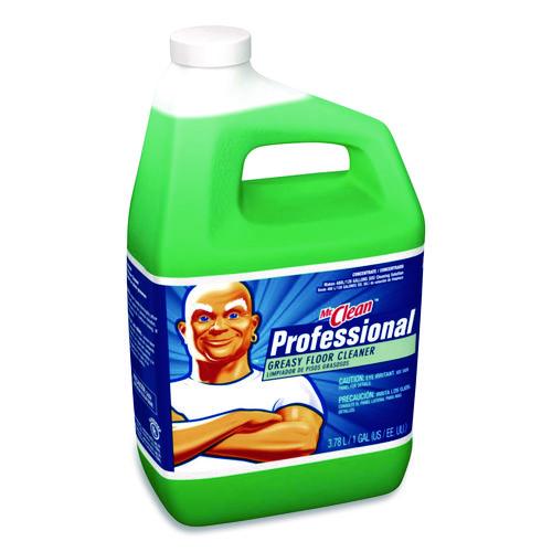 Mr. Clean® Professional Greasy Floor Cleaner Concentrate is specially formulated to cut through tough grease and tracked-in soils on floors, coming from fryer, grill, and range areas in the backs of kitchens. It is a versatile multi-purpose cleaner that can remove grease and dirt on most floor surfaces, walls, tables, food-contact surfaces and restrooms. It is a great product for machine shops, auto repair shops, restaurants, church and school cooking areas, etc.