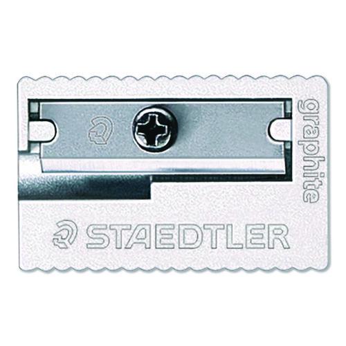 Staedtler® Handheld Manual Pencil Sharpener is a single hole sharpener for standard pencils. It features a large groove for easy removal of leads. Compact design is easy to carry with you.