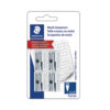 Metal sharpener with blade attached at three points for greater precision and sharper tips. The extra-long pencil gliding slot prevents wedging, while cutout makes it easy to remove broken tips. Contoured grip.